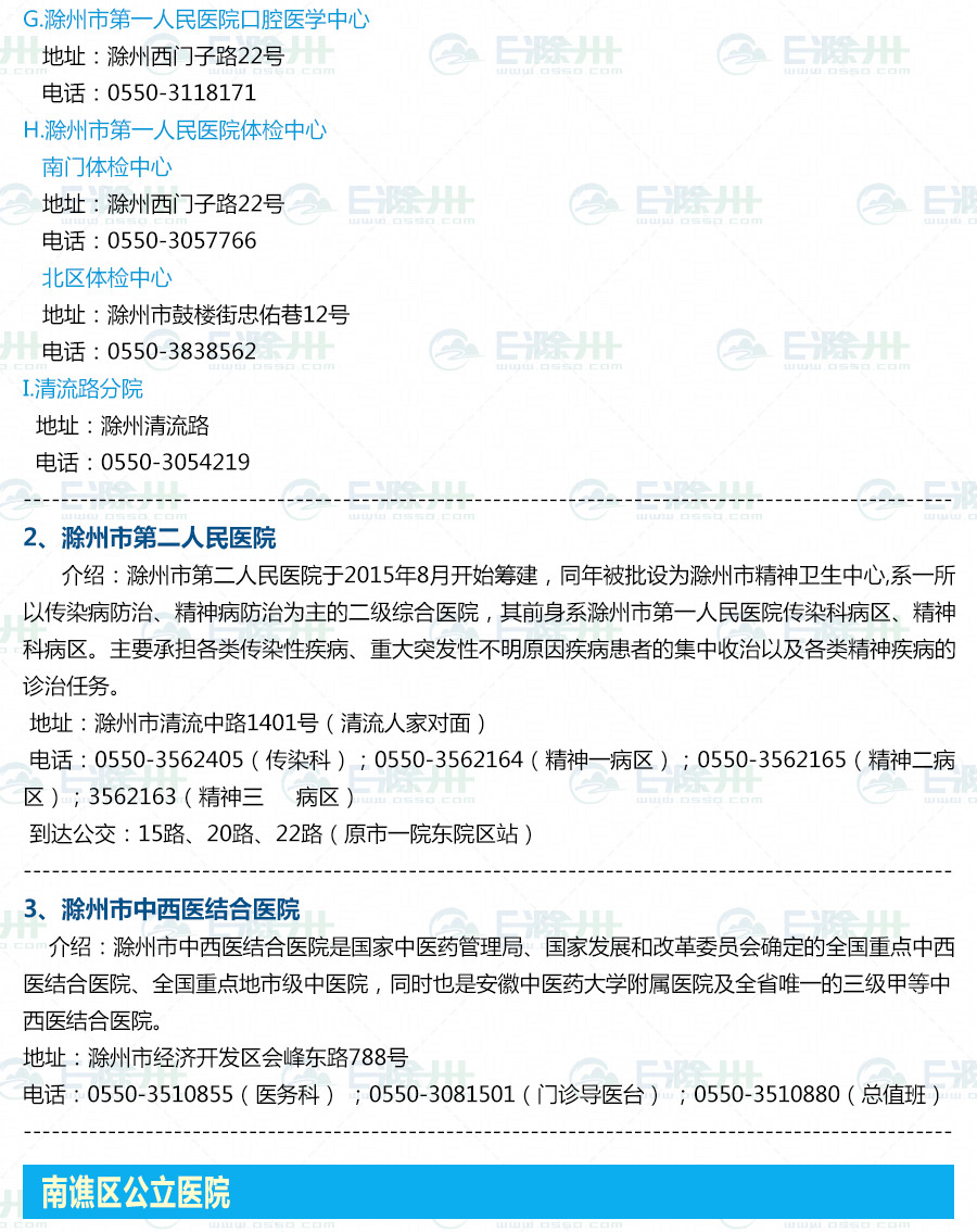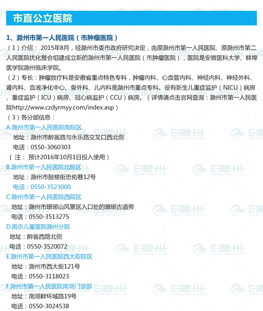 滁州市綜合醫(yī)院信息匯總