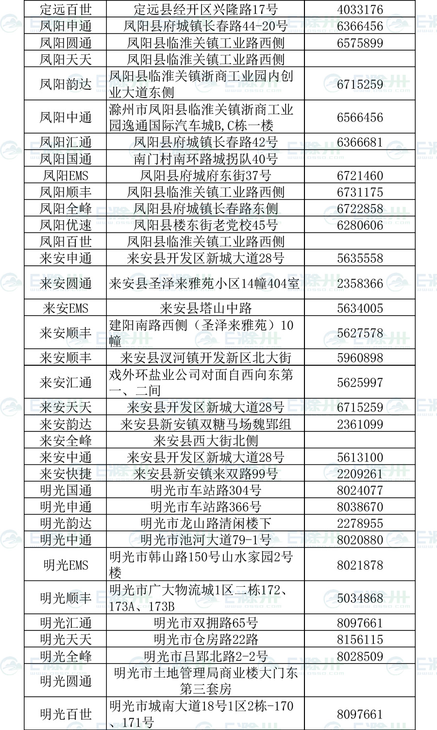 滁州市快遞企業(yè)名錄